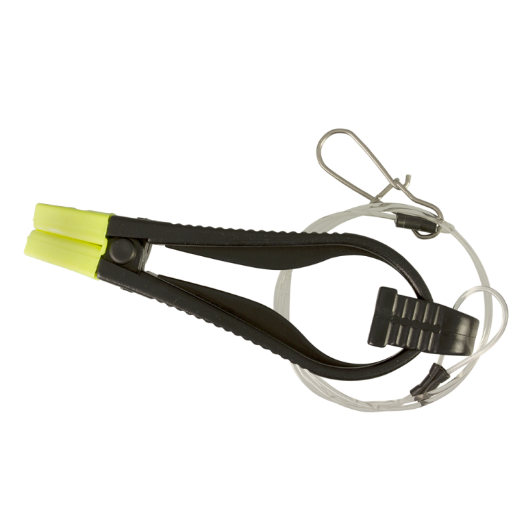 - Fishing line is gripped between the soft pads and variable release tension is attained by moving the line in or out of the jaws